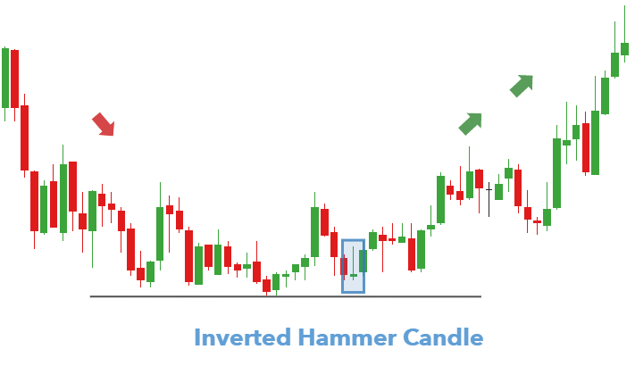 • Sau một thời gian xu hướng giảm giá dài thì sự xuất hiện của Inverted Hammer lại là một dấu hiệu tăng giá cả xu hướng-đây có thể được coi là sự lưỡng lự của các Trader cũng như các nhà đầu tư bởi vì khi đường giá đang trong xu hướng giảm đi lại có sự trỗi dậy đáng kể ngay trong ngày giao dịch thị trường.